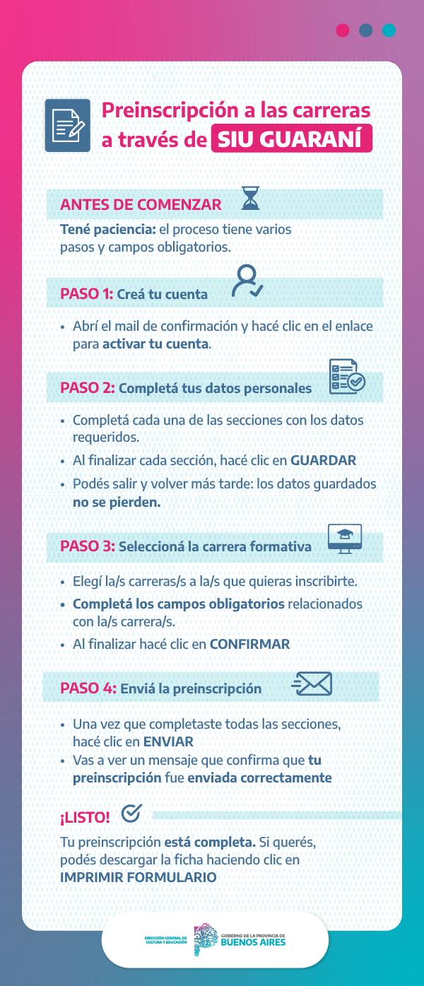 La preinscripción es sólo la primera etapa del proceso de inscripción a la carrera.